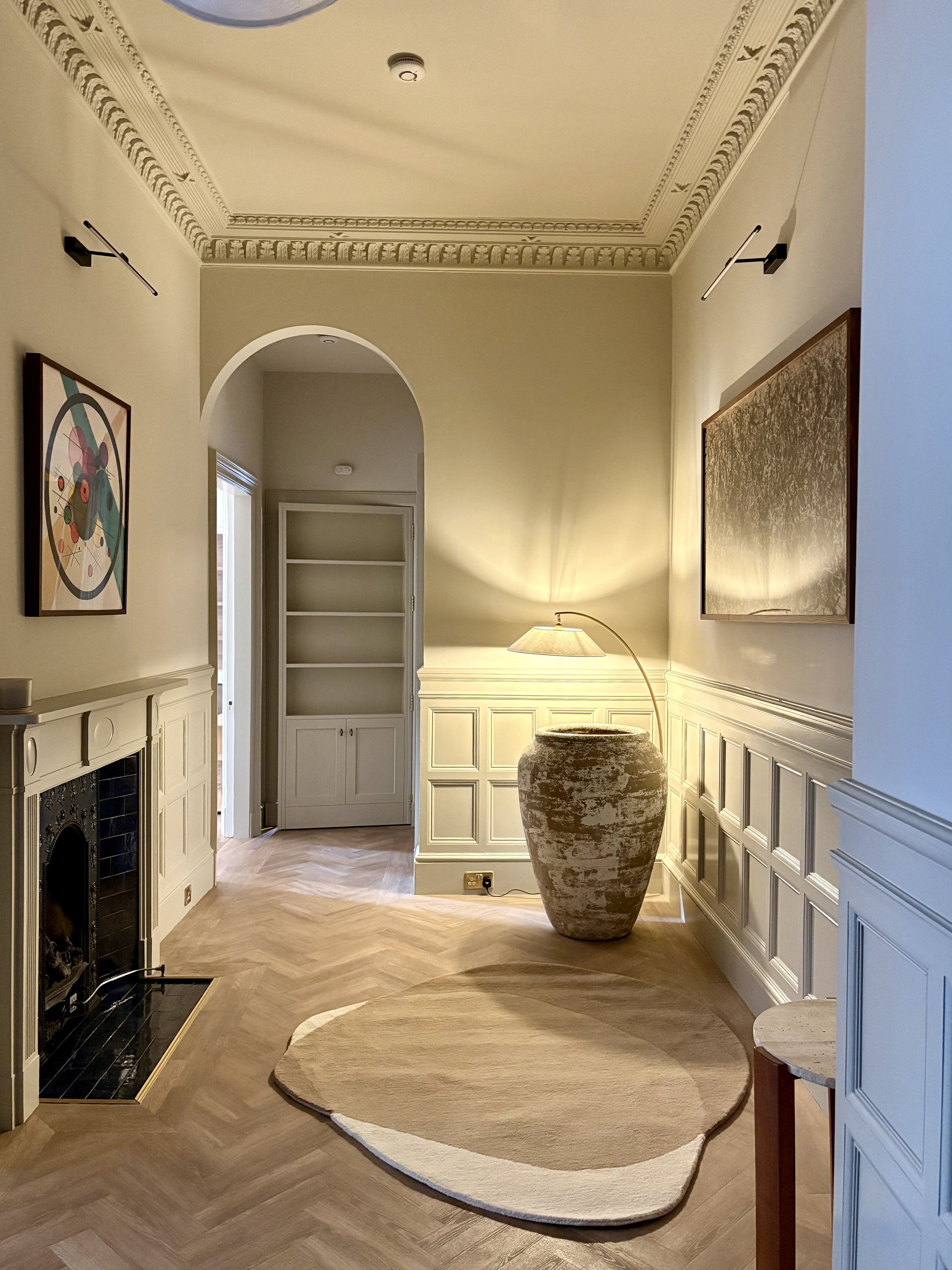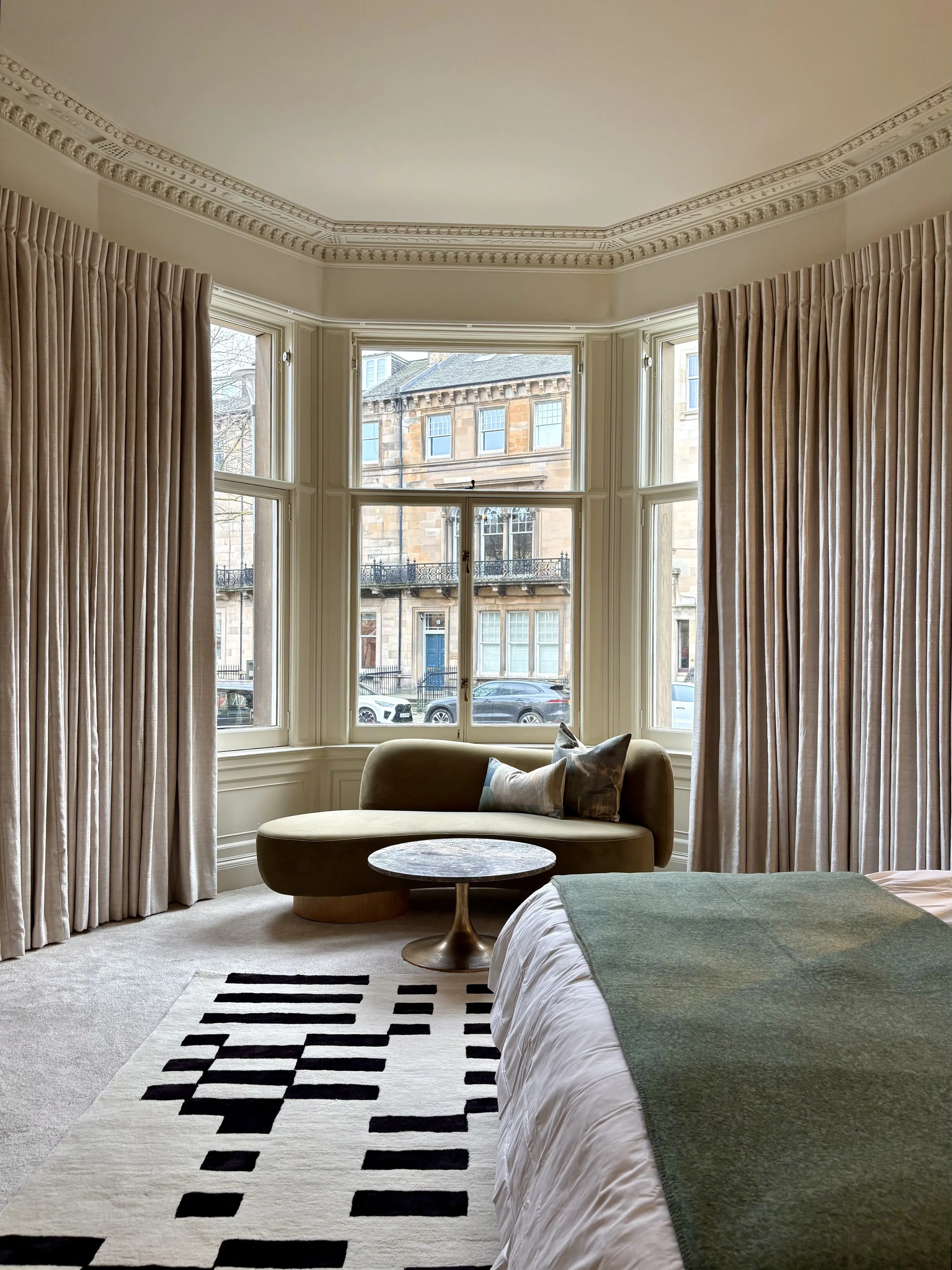 This week we went onsite to view a beautiful property in Edinburgh’s tranquil West End as it nears the final stages before completion. A calm and spacious family home, oozing with art, texture and character — just look at those windows!